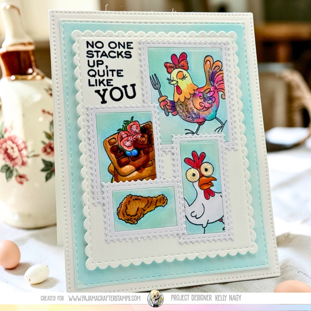 Valentine’s Day is the perfect time to bring out your creative side and make something special for your loved ones! In this post, I’ll guide you through creating a delightful A2 Valentine featuring the adorable Chicken-and-Waffles stamp set from Pajama Crafter Stamps. Supplies You’ll Need Prepare Your Card Base Stamp Your Images Cut Stamped Images…
